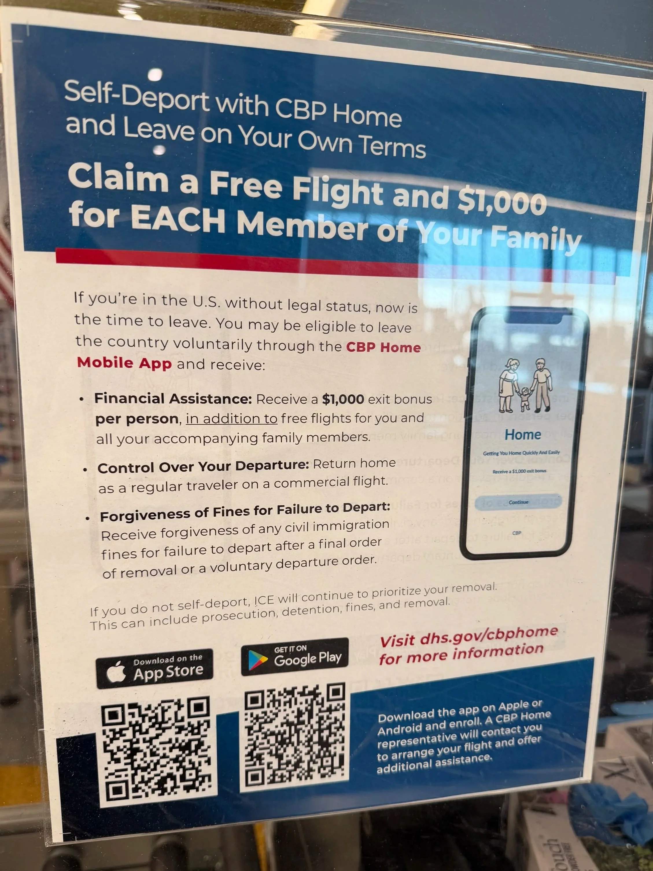 Government flyer at Logan Airport encouraging immigrants to self-deport.