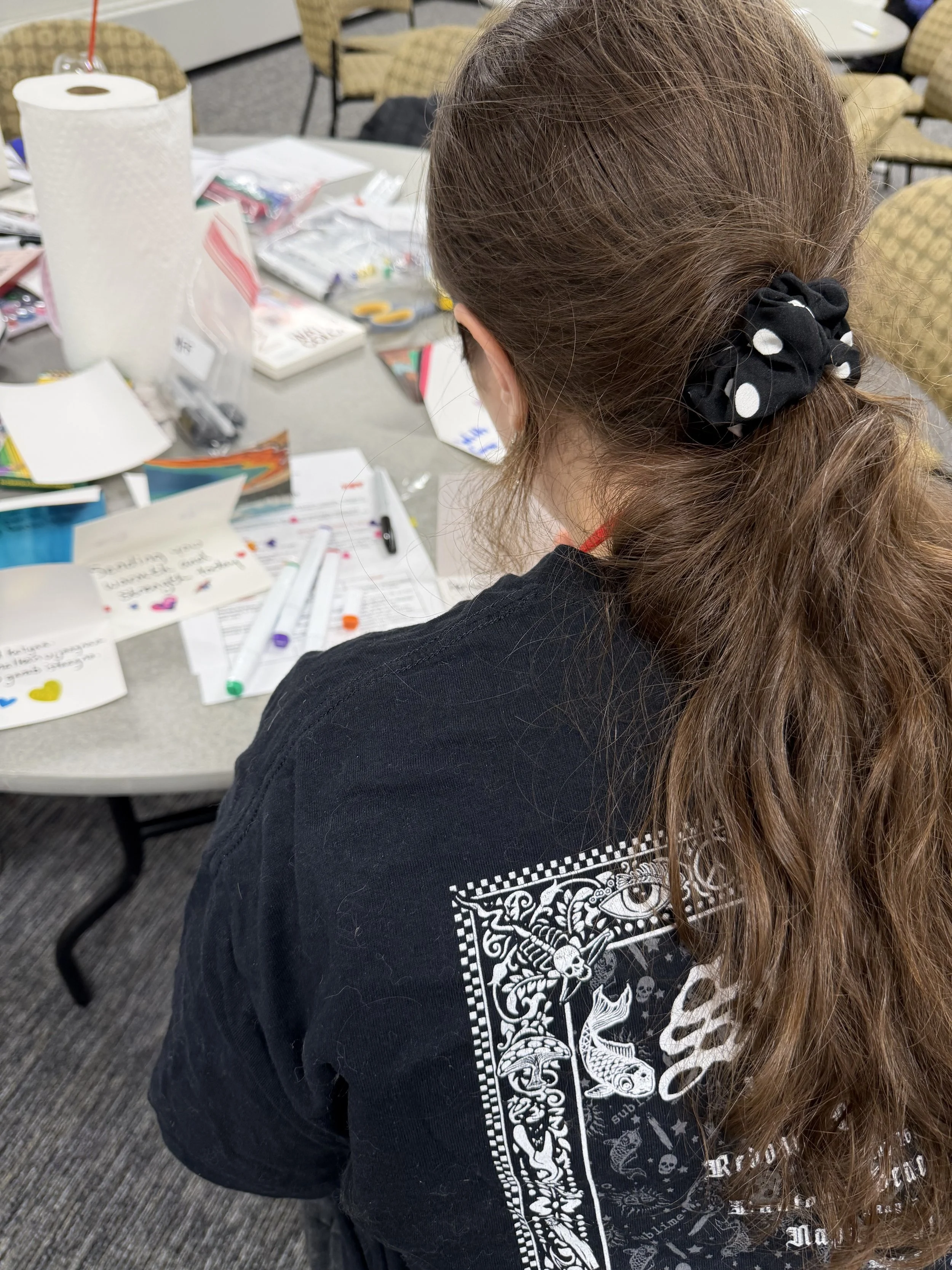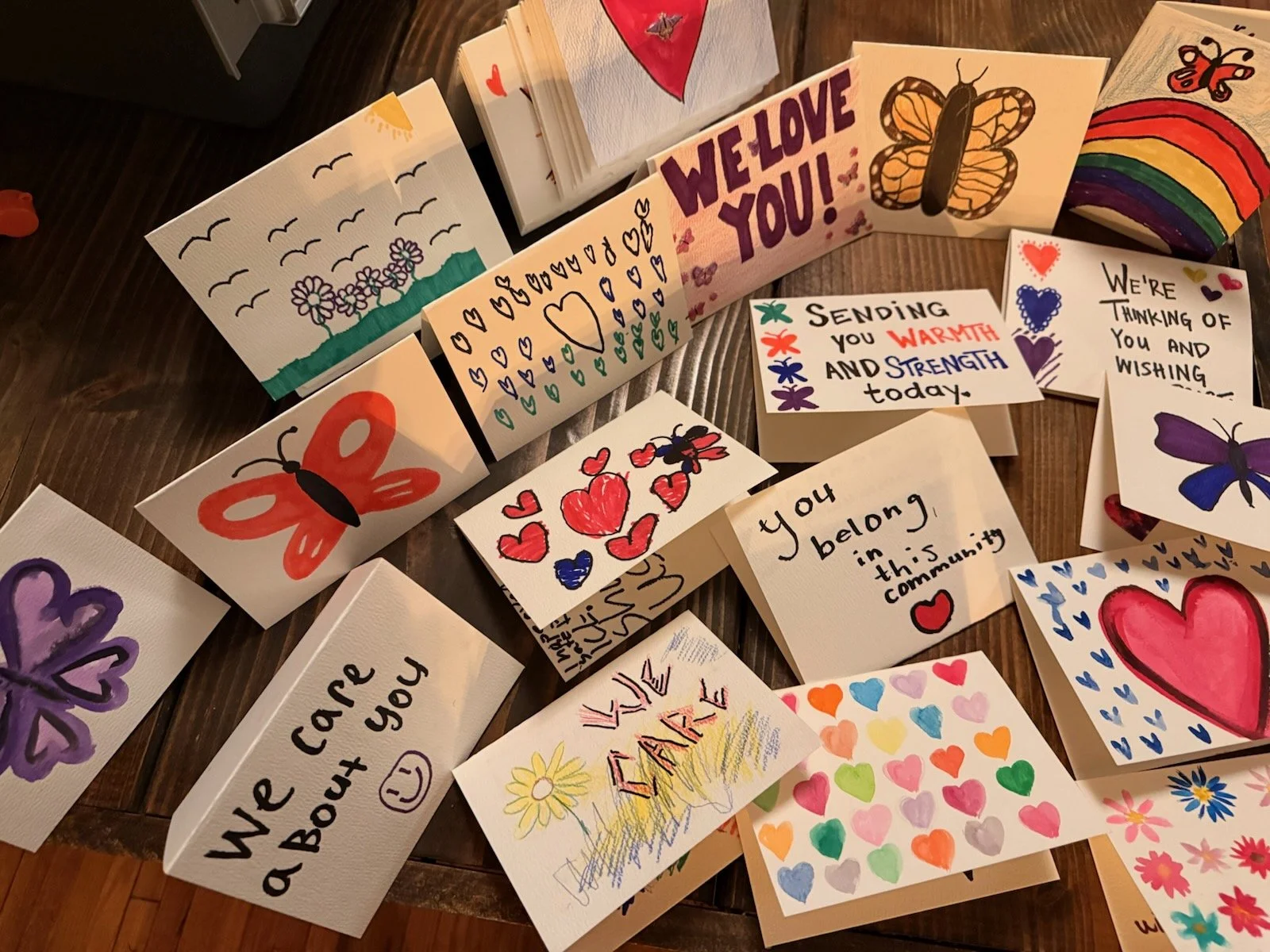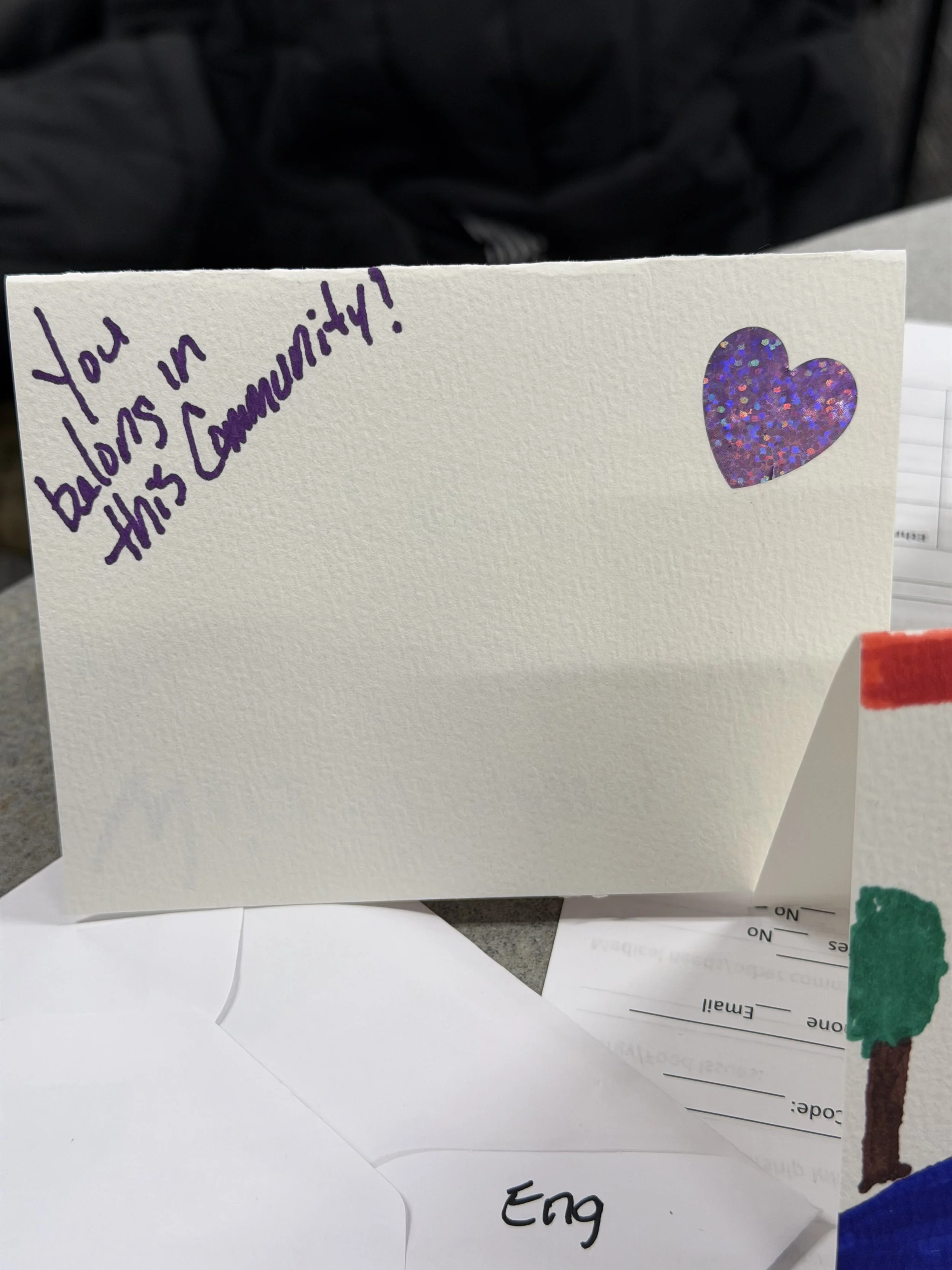 Kids from the West Side Boosters made cards of support to be included in grocery bags being delivered to immigrant families, too afraid to leave their homes.